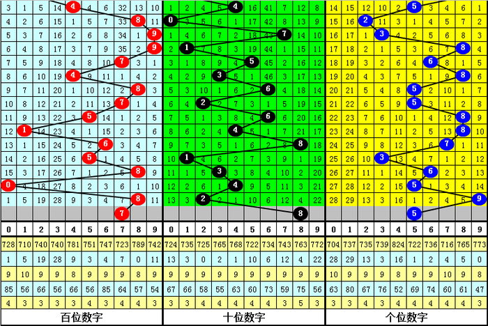 末位跨度分析:前3期末位奖号为6-5-9,最近两期末位奖号跨度为1、4,末位奖号跨度历史上贯穿两期开出1、4的表象共159次,其最近两次奖号为: