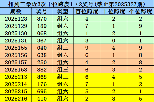 第2025001-第2025003期奖号:123、900、168,其下期奖号为:351,首位号码跨度为2;