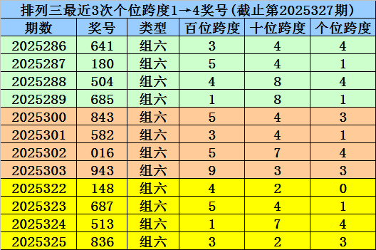 第2025322-第2025324期奖号:148、687、513,其下期奖号为:836,末位号码跨度为3;