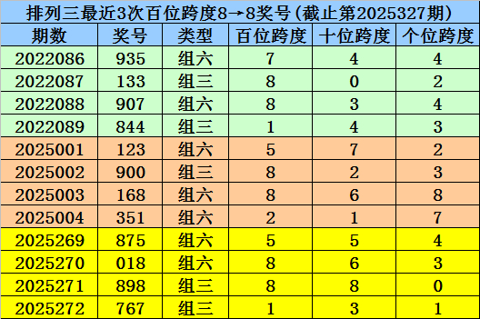 第2025269-第2025271期奖号:875、018、898,其下期奖号为:767,首位号码跨度为1;